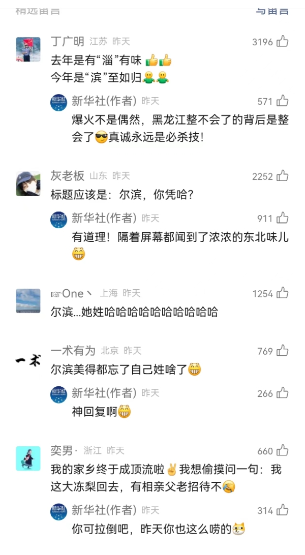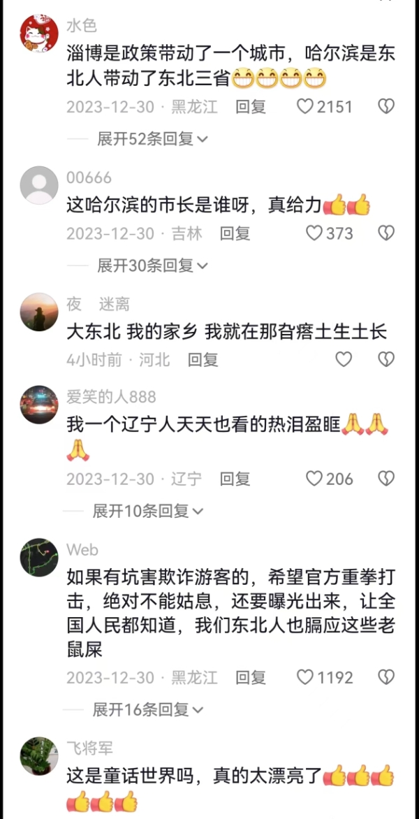 第四、自媒体与主流媒体要形成合力,继续拉升尔滨的人气。这次哈尔滨大火跟宣传形式密切相关,网上各种体验式的短视频、段子和各种议论、跟帖,构成一个轻松愉悦、全民狂欢的热闹场景,给参与者带来自豪感、松弛感和愉悦的体验。