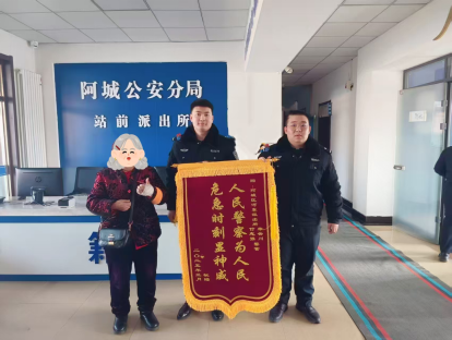 3月12日清晨,哈尔滨市阿城区河东街道的赵奶奶带着一面锦旗来到站前派出所,将印有“人民警察为人民,危急时刻显神威”的锦旗送到民警手中,以此表达对派出所巡逻民警的感激。
