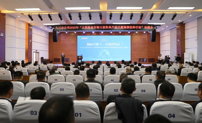 为深入贯彻“藏粮于地、藏粮于技”战略,落实农业农村部粮食作物大面积单产提升工作要求,3月29日,北大荒集团九三分公司举行“垦地共建 农服群英会——九三分公司2025年主要粮食作物大面积单产提升暨揭榜挂帅行动”对接会。旨在通过创新“揭榜挂帅”机制,推动农业科技攻关与成果转化,助力粮食稳产增产和农业现代化发展。