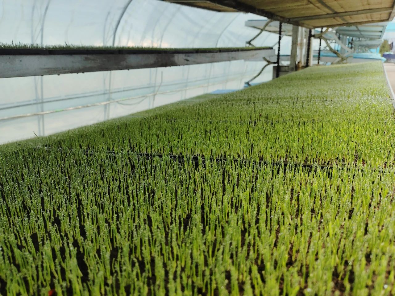 走进北大荒农业股份八五九分公司科技园区的育秧大棚,立体育秧设备上整齐摆放着从叠盘暗室育秧车间“孵化”出的秧苗,棵棵嫩苗挂着晶莹的水珠。这种育秧方式,完美实现叠盘暗室育秧技术与立体育秧技术的深度融合,奏响了一曲农业现代化的新乐章。