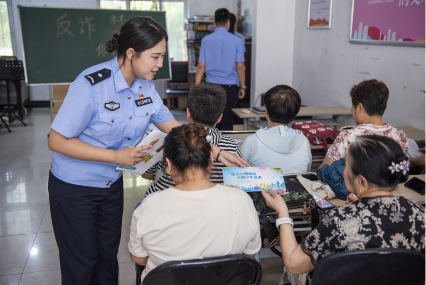 活动中,反诈宣讲员结合军民社区的实际情况,聚焦居民关心的安全问题展开讲解。针对社区中老年人较多的特点,宣讲员用通俗的话语揭露常见骗局,并对居民提出的问题一一解答,还“手把手”教大家设置手机反诈预警功能。禁毒知识宣讲环节,宣讲员通过展示仿真毒品模型,详细介绍了常见毒品的种类、外形以及对个人和家庭的严重危害,提醒居民要提高警惕,远离不明来源的食品和物品,一旦发现涉毒线索及时举报。现场居民看得认真、听得仔细,不少人拿出手机拍下模型照片,打算回家讲给家人听。考虑到夏季是溺水事故高发期,宣讲员还重点普及了防溺水知识。他们结合真实案例,讲解了野外游泳的危险性,以及遇到他人溺水时如何科学施救,强调“智慧救援”比盲目下水更重要。