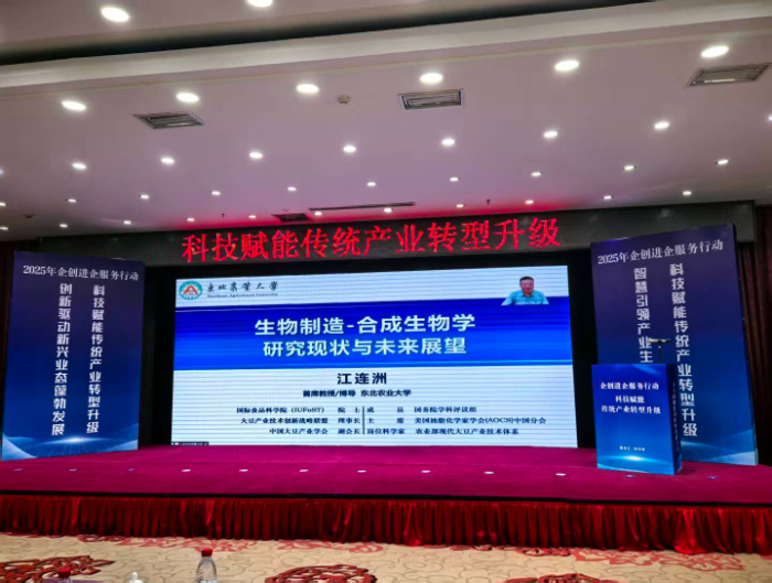 国家大豆工程技术研究中心主任江连洲作《生物制造-合成生物学研究现状与未来展望》特邀报告,围绕生物制造与合成生物学的内涵展开深入剖析,详细介绍了合成生物学在多个领域的代表性应用,充分展示了这项技术在实际生产中蕴含的巨大潜力与显著价值。