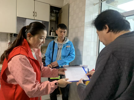 图为中庆燃气工作人员在施工前进行入户登记。(杨程 摄)