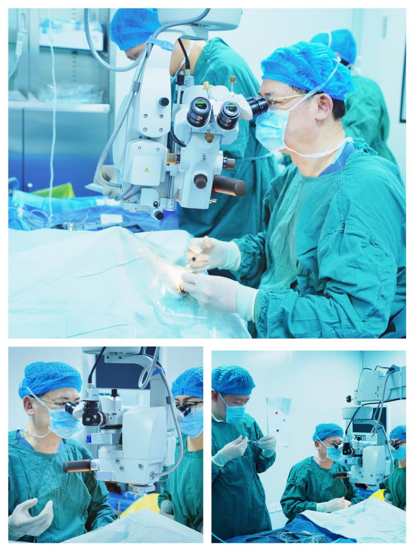 一切准备就绪后,崔海滨团队为患儿实施了“气体喉罩麻醉下白内障超声乳化吸除+人工晶体植入术”。手术团队操作精准娴熟,仅用时不足五分钟,便成功将混浊的晶体乳化吸出,并植入了合适度数的人工晶体。