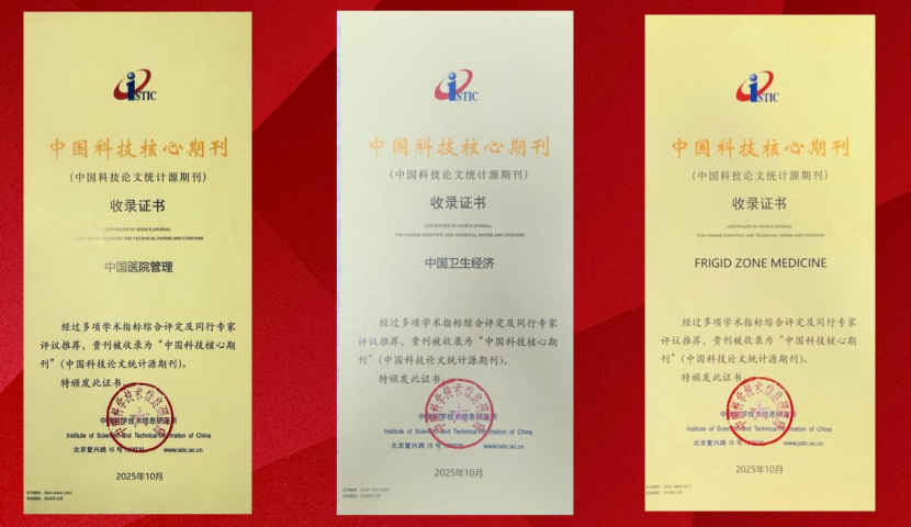 10月30日,黑龙江省卫生健康发展研究中心的《中国医院管理》《中国卫生经济》《寒地医学(英文)》三本期刊,成功入选中国科技核心期刊(中国科技论文统计源期刊)目录,其中《中国医院管理》《中国卫生经济》两刊均实现连续多年被收录,《寒地医学(英文)》在创刊仅三年后,已连续两年被收录。