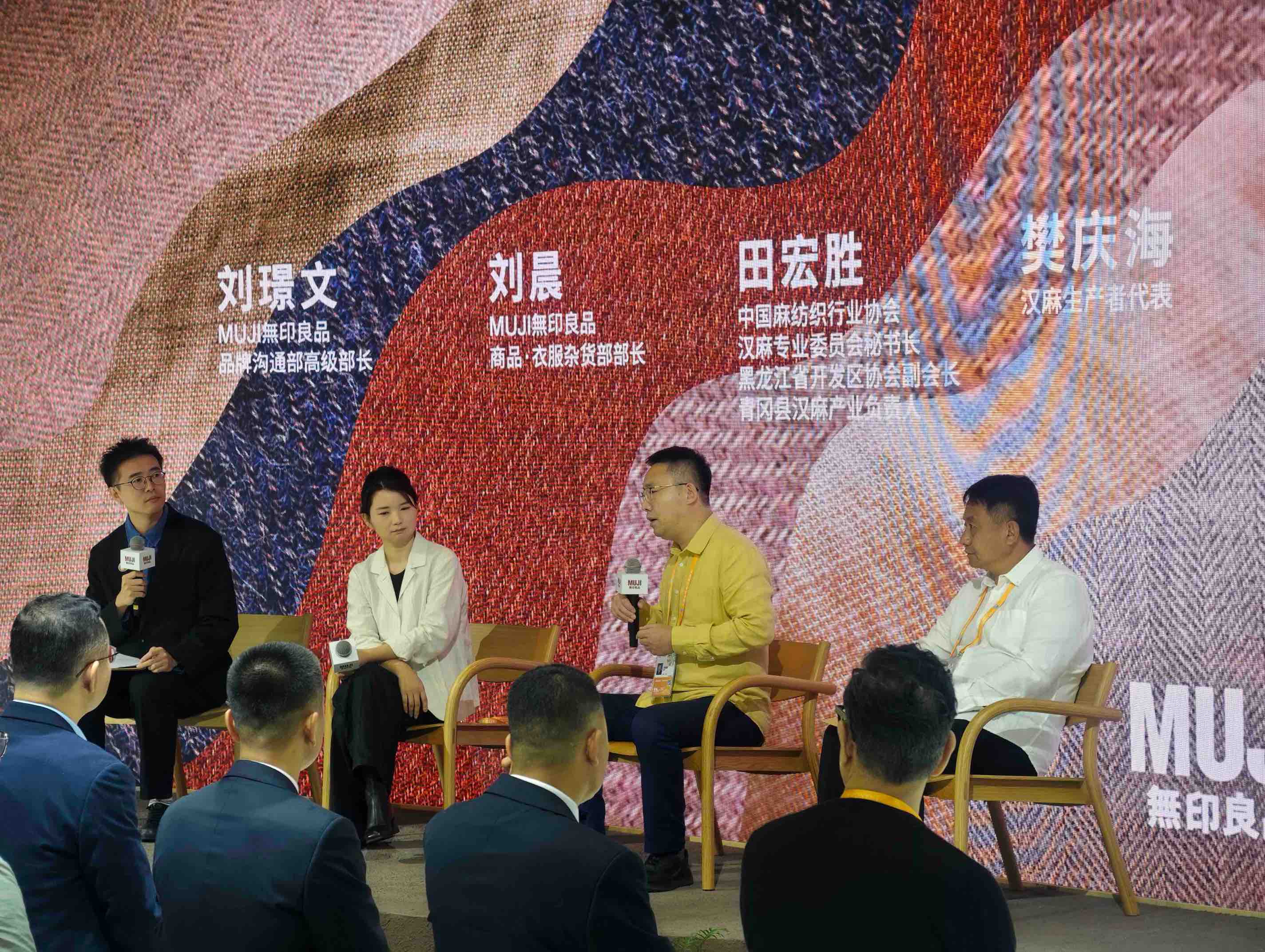 在第八届中国国际进口博览会举办期间,MUJI無印良品以“耕种之美”为主题第三次参展。11月7日,MUJI無印良品在展厅内以中国黑龙江汉麻为亮点之一,邀请品牌高管、行业协会代表、地方产业负责人及生产者共话汉麻产业生态,揭秘它从黑土地走向消费市场的全链条故事。