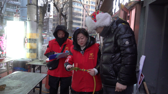 温情服务流淌在细节。“师傅,去中央大街怎么走?”“姑娘,需不需要暖宝宝?”早市入口的“暖心服务站”里,网格员随时响应。针对南方游客,服务站免费提供暖宝宝、冻疮膏;联动商户设立行李临时寄存点;通过网格微信群和智治平台,高效协寻失物、对接邮寄特产,累计解决各类游客诉求830余件。社区还协调职能部门,主动赋能商户,提供执照“上门办”、线上运营指导等便捷服务,让商户少跑腿、好办事。来自内蒙古羊汤商户邹丹对此感触颇深:“从入驻申请到摊位选定,再到执照办好,全程不到10天,手续都是社区网格员协助办理,高效又省心。”此外,红专西段社区还定期组织食品安全、规范经营等培训,助力商户提升品质,让早市的“烟火气”与“文明风”同行。