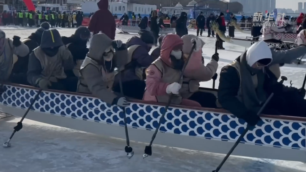 首届“哈工大-剑桥-牛津(哈剑牛)杯”冰上龙舟国际友谊赛1月10日在“冰城”哈尔滨开赛。
