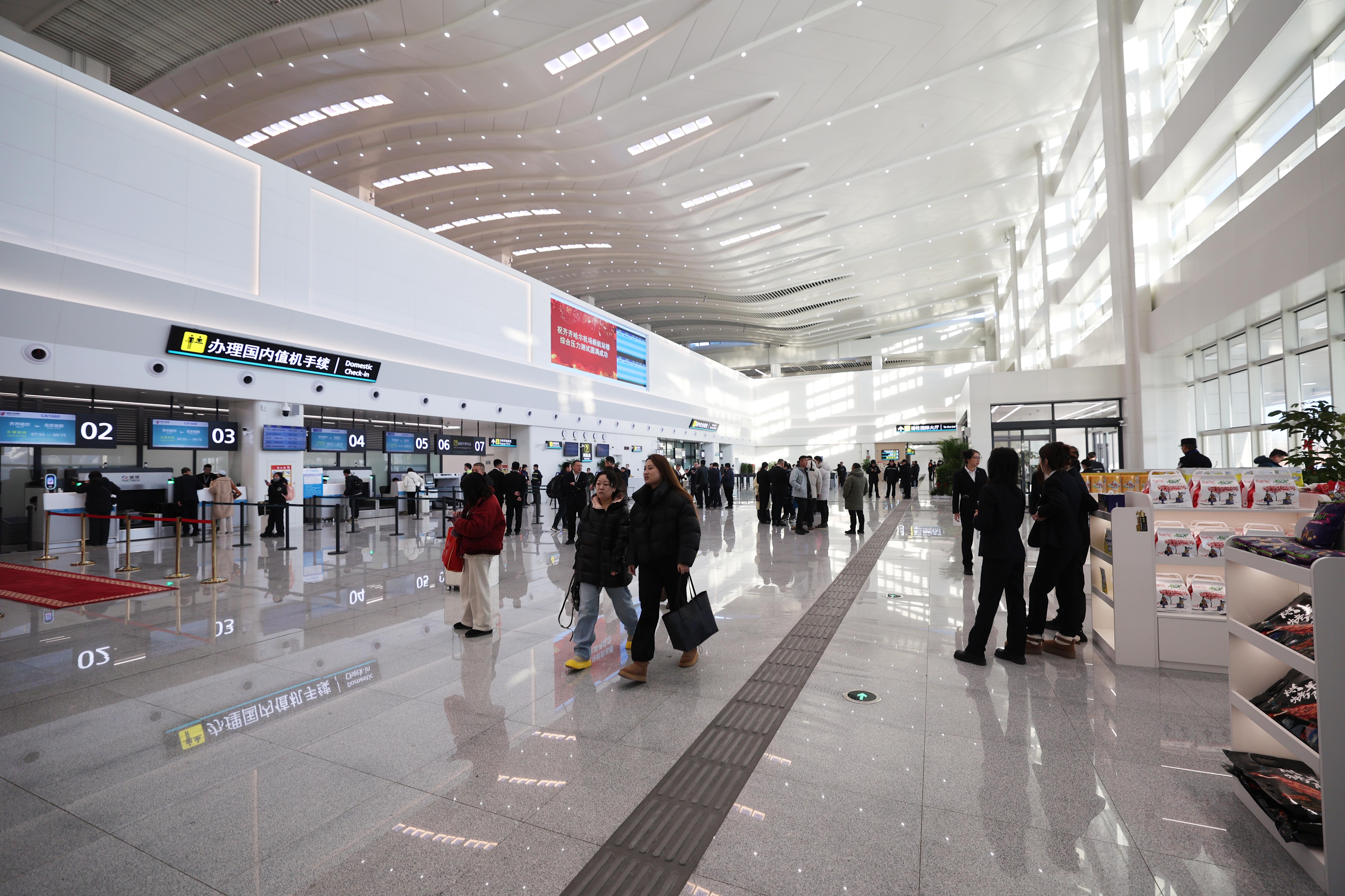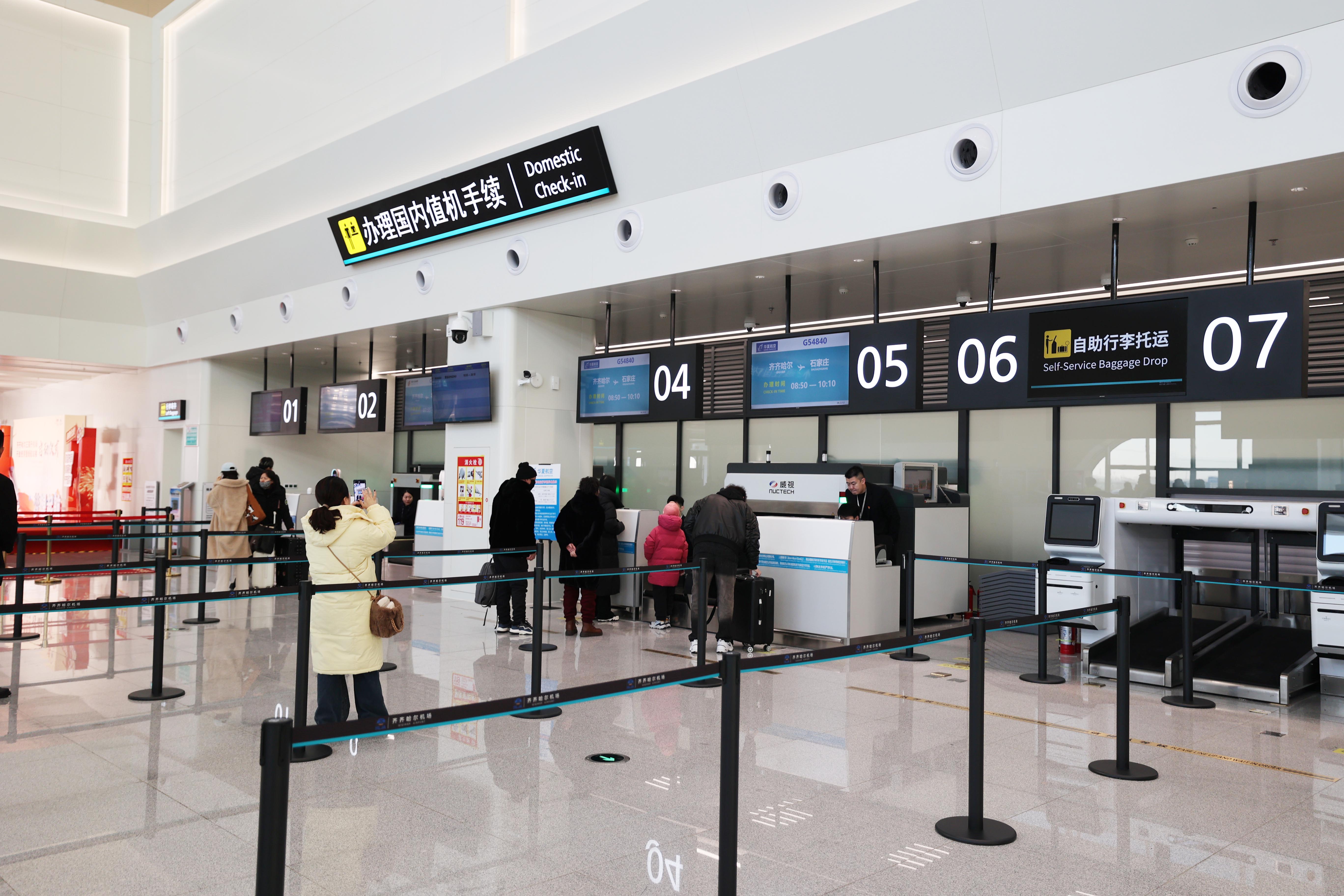 作为拥有4C级双跑道系统的支线枢纽,新航站楼硬件能力大幅提升,3600米跑道可起降空客A320、波音737及国产C919等主流机型,新增精密进近系统与9个C类机位,显著提升航班保障能力与准点率。智慧服务贯穿出行全程,自助值机和自助托运设备与人工柜台互补,配合线上值机,最快3分钟即可完成手续。8条安检通道配备人脸识别技术,高效便捷。廊桥替代摆渡车,搭配充足便民设施与无障碍服务,让旅客出行更高效从容。
