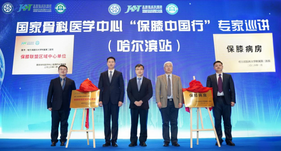 会上,黄野教授与哈医大二院副院长王广志为哈医大二院“保膝联盟区域中心单位”揭牌;吕松岑教授与王新涛教授同步为“保膝病房”授牌。这标志着哈医大二院作为黑龙江省首家该中心单位,正式接入国家级保膝协作网络,将以“精准诊疗+全周期管理”为核心,为东北患者构建从预防到康复的全链条服务体系。