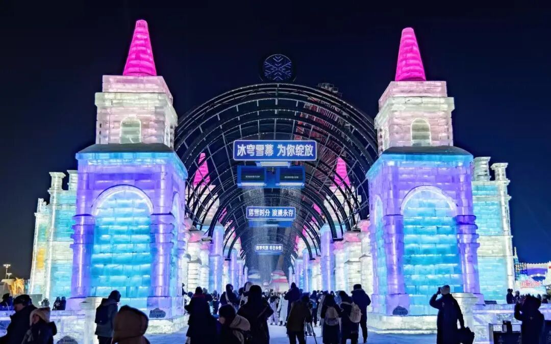 哈尔滨冰雪大世界匠心打造的“中华巴洛克冰韵长廊”以中华巴洛克历史街区为原型,搭配全天候飘雪特效,让游客随时沉浸式感受“下雪的哈尔滨”的极致浪漫。