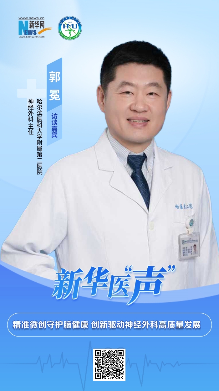 本期做客《新华访谈》的是哈尔滨医科大学附属第二医院神经外科主任郭冕,他将围绕神经外科领域相关知识,与广大网友深入交流,解读领域新进展、科普健康防护要点。