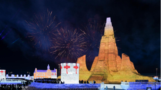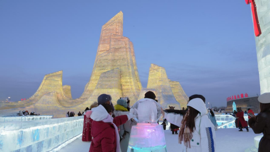 据悉,“冰灯启梦”主塔是本届哈尔滨冰雪大世界核心景观,总用冰量达3.9万立方米,是园区内最高、单体规模最大的冰建景观,其设计以雪花托举“山”字为核心意象,诠释着“冰天雪地也是金山银山”的重要理念。作为享誉全国的冰雪旅游地标,哈尔滨冰雪大世界凭借精湛的冰雪艺术,吸引着海内外众多游客。