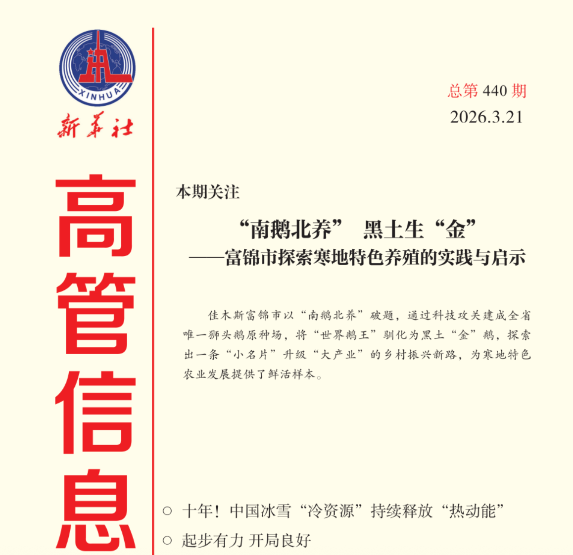 佳木斯富锦市以“南鹅北养”破题,通过科技攻关建成全省唯一狮头鹅原种场,将“世界鹅王”驯化为黑土“金”鹅,探索出一条“小名片”升级“大产业”的乡村振兴新路,为寒地特色农业发展提供了鲜活样本。