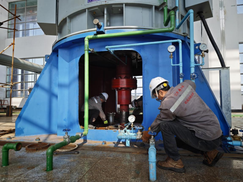 据现场检修负责人郑佳伟介绍,本次检修主要围绕电力供应与水力输送两大系统展开。对变压器进行全面校验与维护;对部分水泵机组增加防抬装置,同步优化润滑与密封系统,有效解决机器长期运行积累的磨损与老化问题,全面提升了机组运行效率、可靠性与使用寿命。