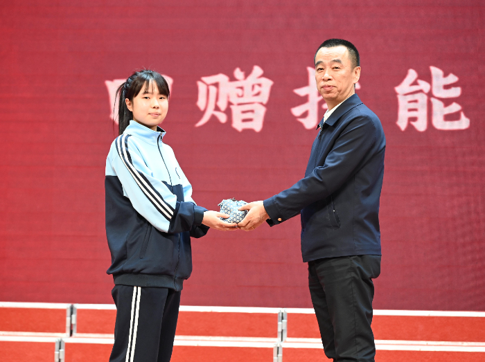 受助学生代表向国能黑龙江新能源有限公司领导回馈自己制作的作品