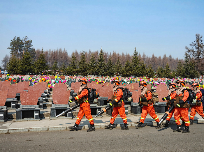 同时,总队在各大公墓陵园部署指战员开展全程巡逻防控,紧盯祭扫高峰时段,向祭扫群众详细讲解野外用火的危险性,严防因用火不慎引发火情,以坚守为清明祭扫筑牢安全“防火墙”。