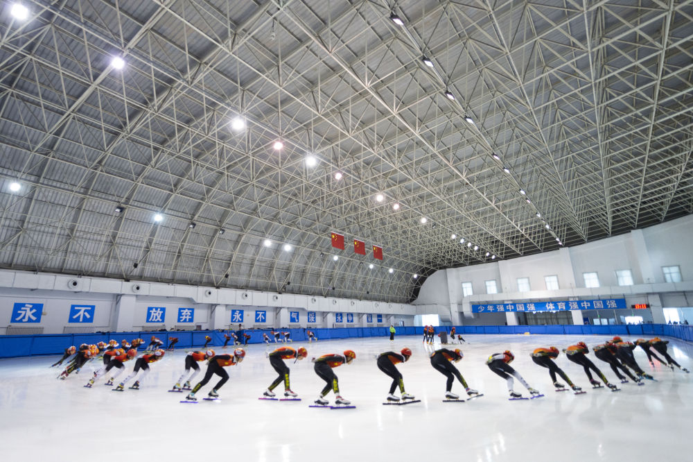 运动员在七台河体育中心进行冰上训练。新华社记者 谢剑飞 摄