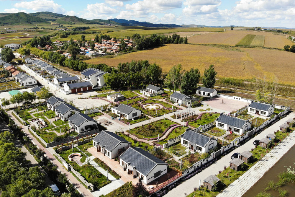 黑龙江勃利县勃利镇元明村“寒地中草药小镇”(无人机照片)。新华社记者 谢剑飞 摄