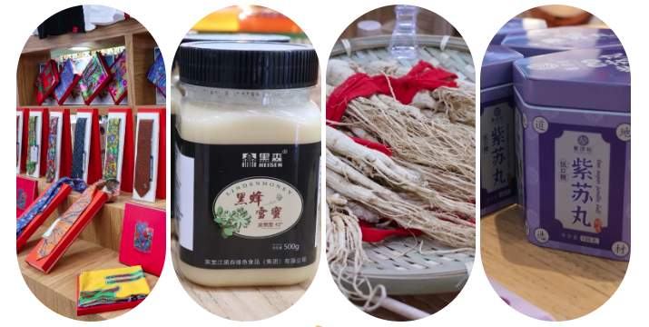 走进龙江森工展区,雪乡文旅产品、森林蜂蜜、森林紫苏、森林中草药等12大系列百余款产品映入眼帘。龙江森工集团还根据消费者的需求,带来了黑蜂蜜酒、紫苏丸、沙棘油胶囊、蓝莓冻干粉等特色新品,吸引了广大客商前来驻足洽谈。
